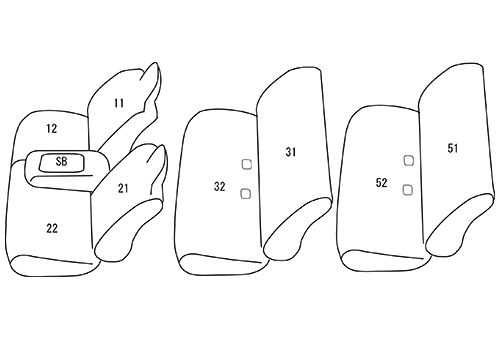 1列目:座面形状が4:6分割、ヘッドレスト一体型、センターシート有り