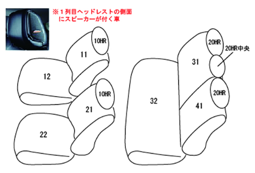 | 形 状 | オプションのBOSEパーソナルプラスサウンドシステム装着車(1列目ヘッドレスト側面にスピーカーが付く) 2列目アームレスト無し 1列目シートヒーター(寒冷地仕様)対応 ※1列目アームレストカバー無し |