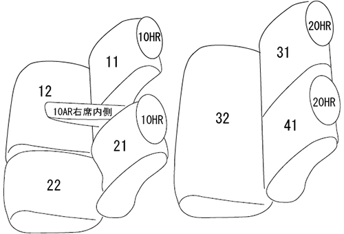 | 形 状 | 運転席手動シート 2列目4:6分割チップアップスライドシート 大型コンソール(オプション)装着車も対応するが、コンソール用カバーは無し ※1列目アームレスト付き車は背もたれカバーに穴を開ける加工が必要です |